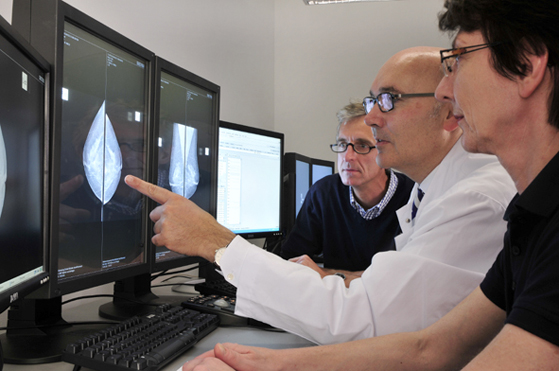 Die Untersuchung der Brust wird von unseren speziell geschulten radiologischen Fachkräften durchgeführt. Sie haben langjährige Erfahrungen im Bereich der Mammographie gesammelt und stehen Ihnen für alle Fragen zur Seite.